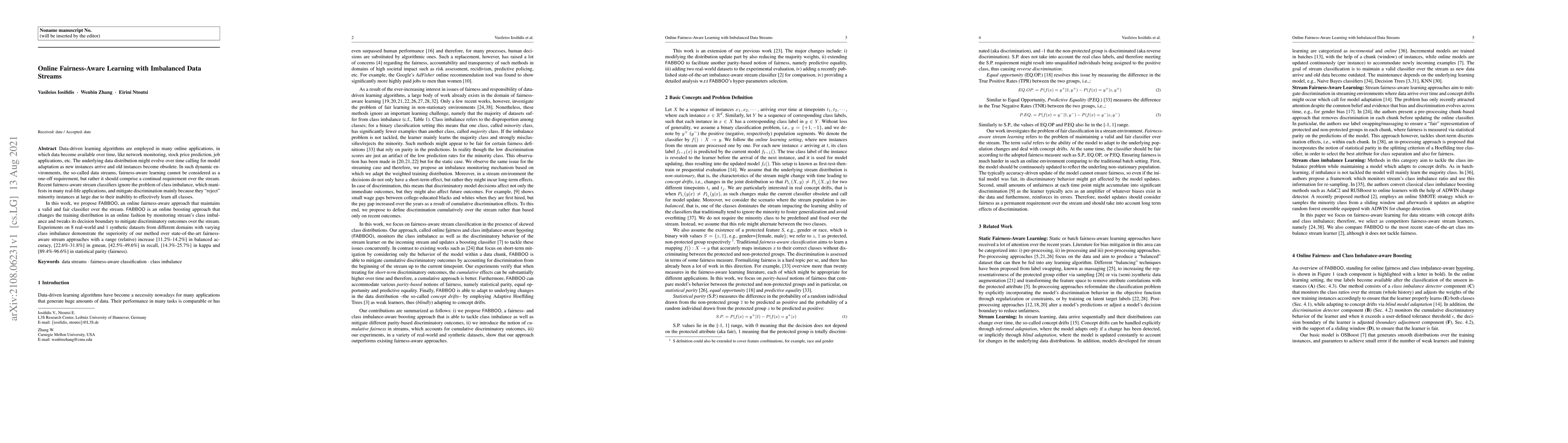 This paper proposes an online fairness-aware boosting approach for learning from data streams with class imbalance, achieving superior performance in balanced accuracy, gmean, recall, kappa, and statistical parity compared to existing methods. Experiments across diverse datasets show significant improvements in fairness metrics.