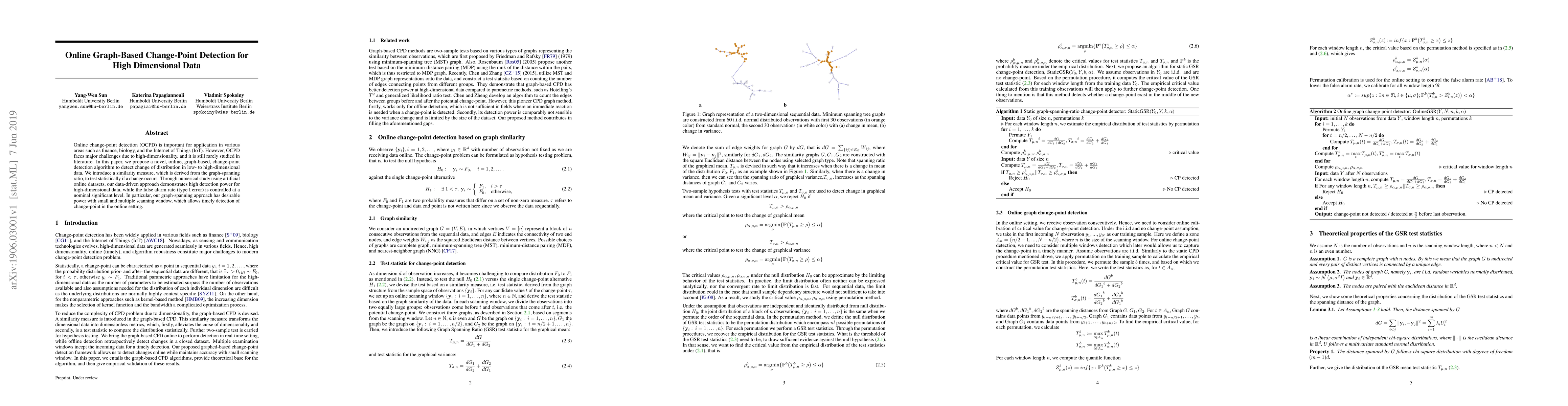 This paper introduces a novel online graph-based change-point detection algorithm for high-dimensional data, utilizing a graph-spanning ratio similarity measure. The proposed method effectively detects distribution changes with controlled false alarm rates, demonstrating high detection power and timely change-point identification.