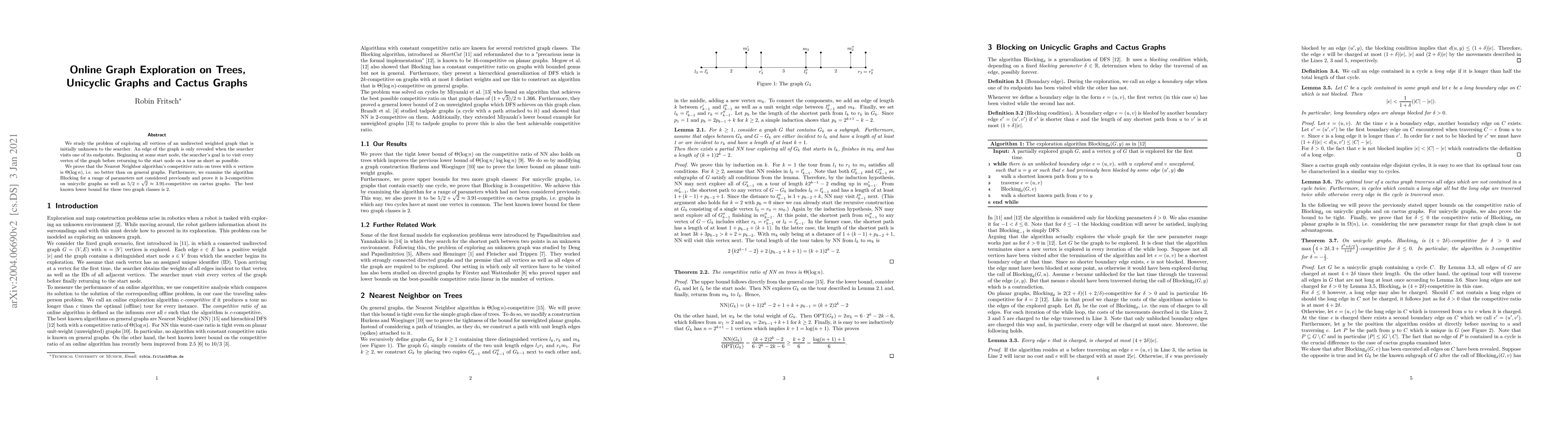 This paper investigates the online exploration of unknown undirected weighted graphs, focusing on trees, unicyclic graphs, and cactus graphs. It proves that the Nearest Neighbor algorithm has a competitive ratio of $\Theta(\log n)$ on trees, and demonstrates that the Blocking algorithm is 3-competitive on unicyclic graphs and approximately 3.91-competitive on cactus graphs.