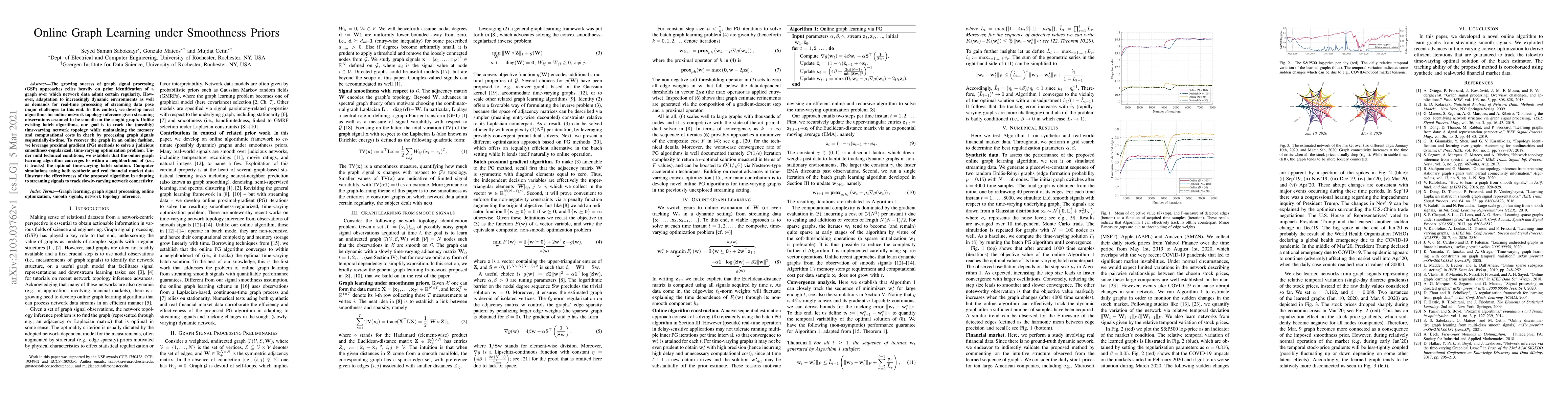 The paper develops novel online algorithms for network topology inference using proximal gradient (PG) methods, processing graph signals sequentially-in-time to maintain memory and computational costs in check. The algorithms aim to track slowly-varying network connectivity from streaming data assumed to be smooth on the sought graph.