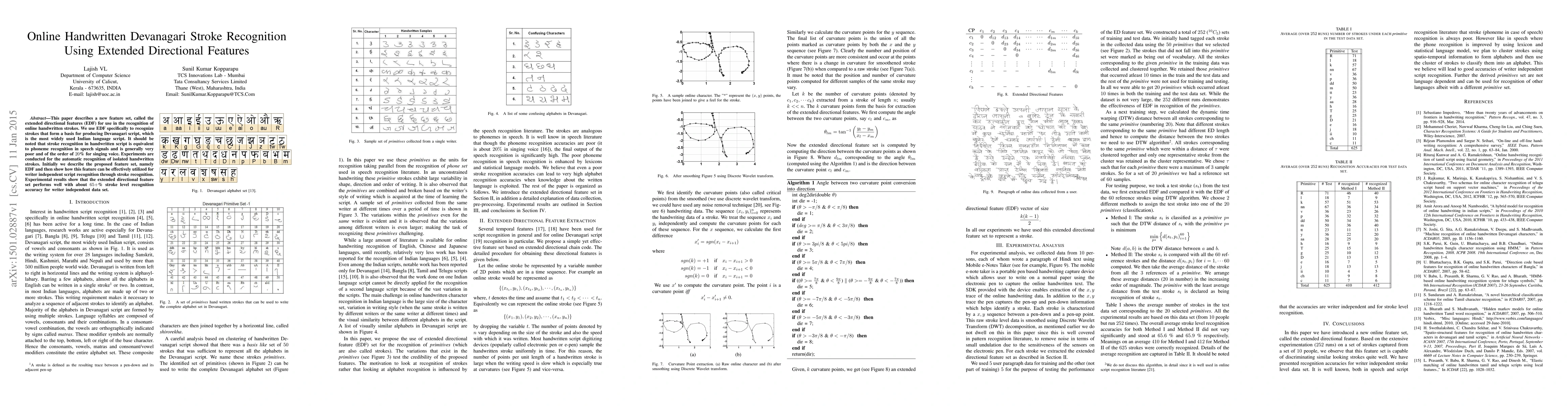 This paper introduces extended directional features (EDF) for recognizing online handwritten Devanagari strokes, achieving over 65% accuracy in writer independent stroke recognition, demonstrating the effectiveness of EDF in script recognition.