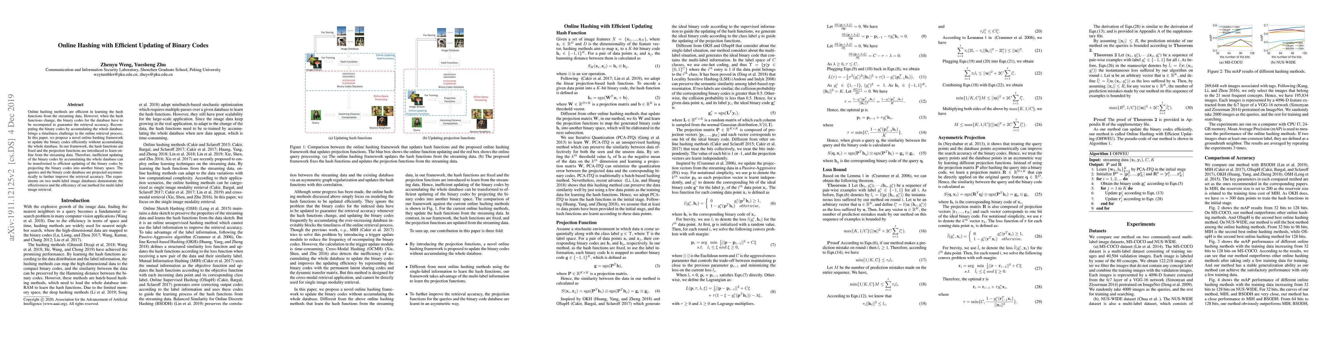 This paper proposes an efficient online hashing framework that updates binary codes without recomputing the entire database, using projection functions to transform binary codes into another space, thus improving retrieval accuracy while maintaining efficiency. Experiments on multi-label image databases show the method's effectiveness and efficiency.
