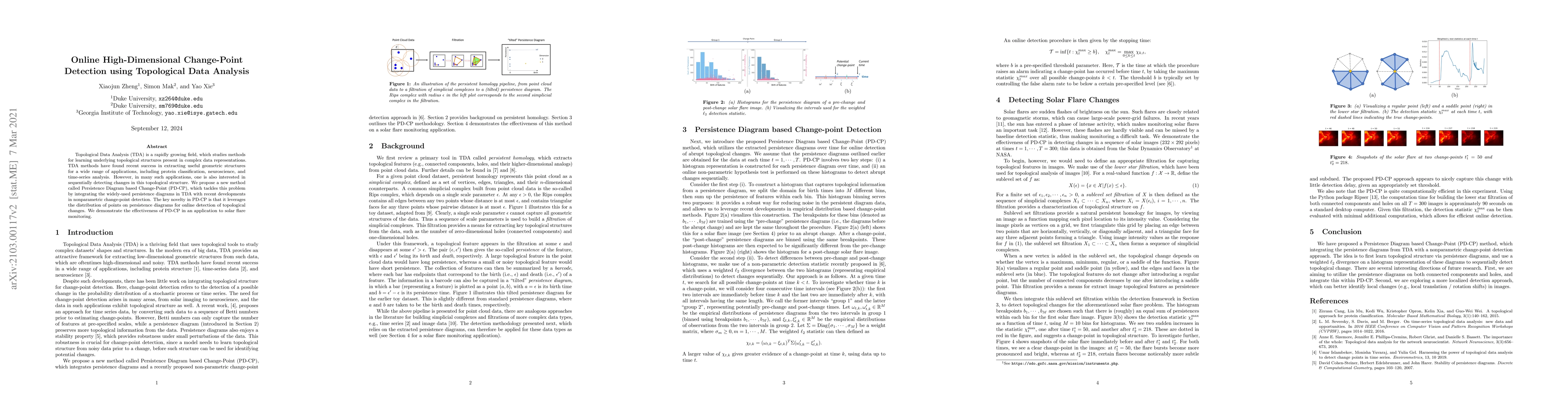 This paper proposes a new method, PD-CP, for online high-dimensional change-point detection using Topological Data Analysis (TDA). It integrates persistence diagrams with nonparametric change-point detection to detect topological changes in data streams, demonstrated effectively in solar flare monitoring.