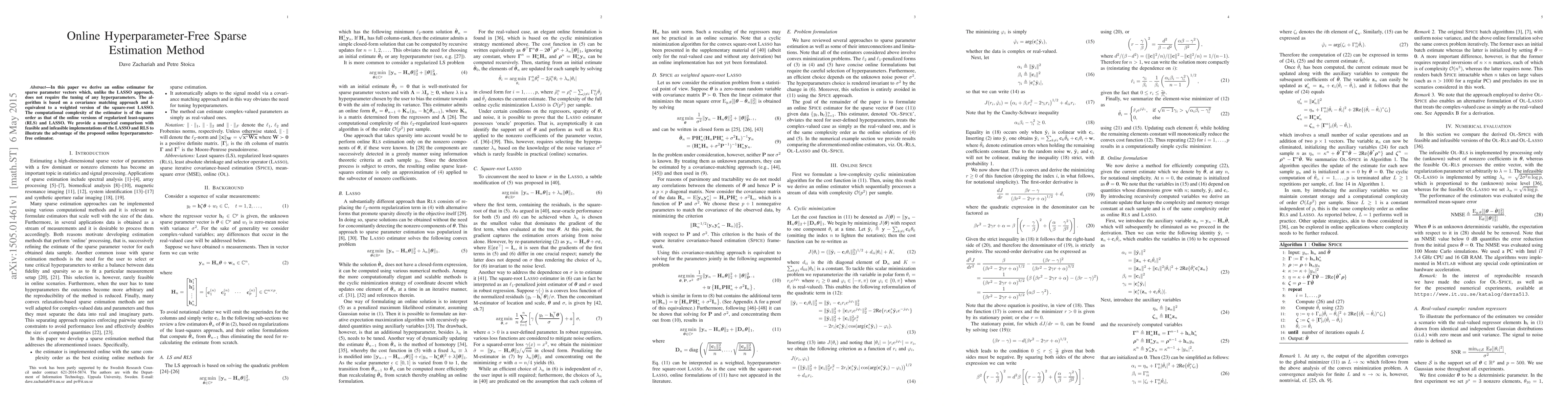 This paper introduces an online hyperparameter-free sparse estimation method that outperforms traditional LASSO and RLS algorithms in terms of computational complexity and feasibility.