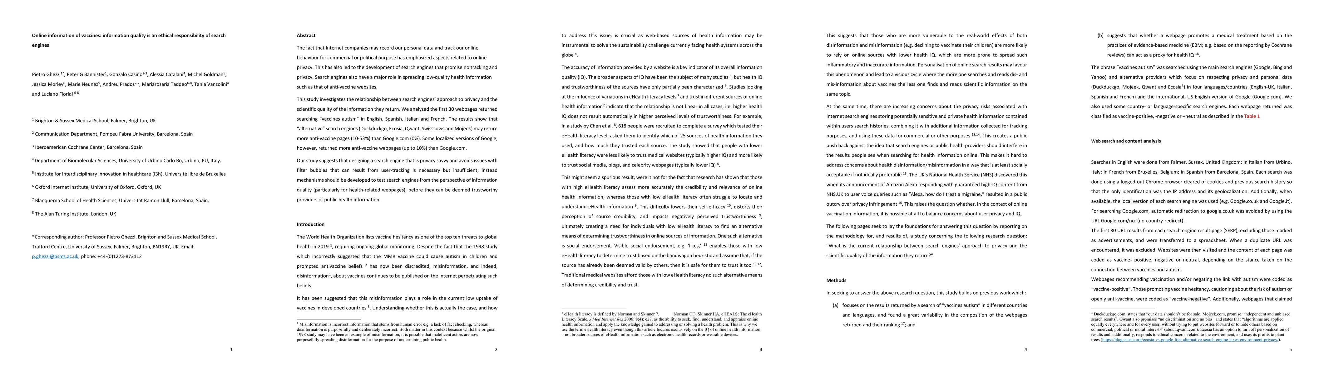 This study examines the relationship between search engines' privacy policies and the quality of health information they provide, focusing on anti-vaccine content. It found that alternative search engines often return more anti-vaccine pages compared to Google, suggesting that privacy-focused search engines need to prioritize information quality to be deemed trustworthy for public health information.