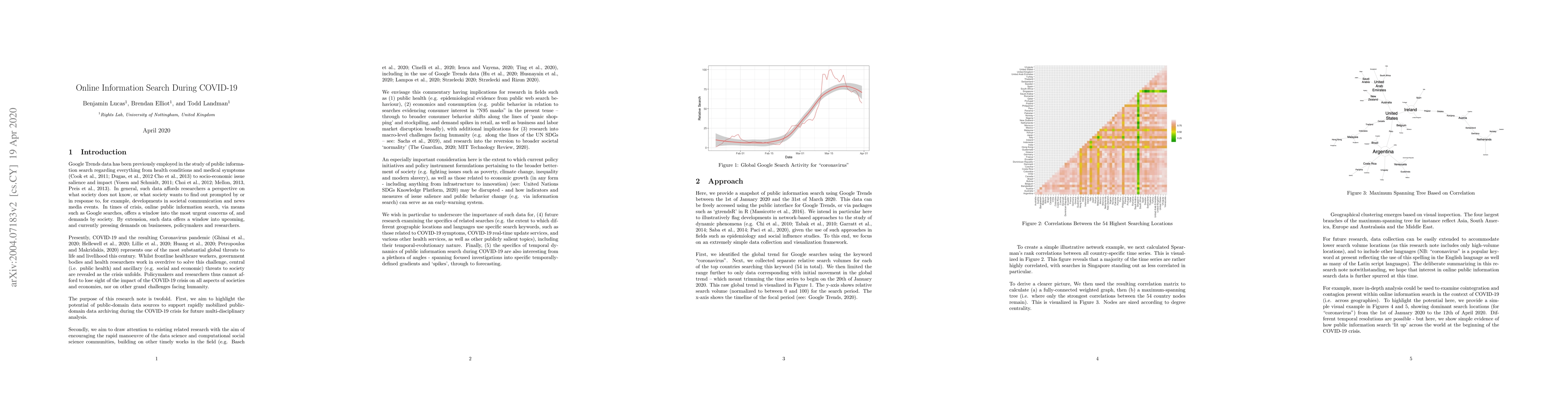 This research note uses Google Trends data to analyze public information search patterns during the COVID-19 pandemic, revealing society's urgent concerns and demands, and providing insights for businesses, policymakers, and researchers. The study provides a visual overview of the most pressing issues during the crisis.