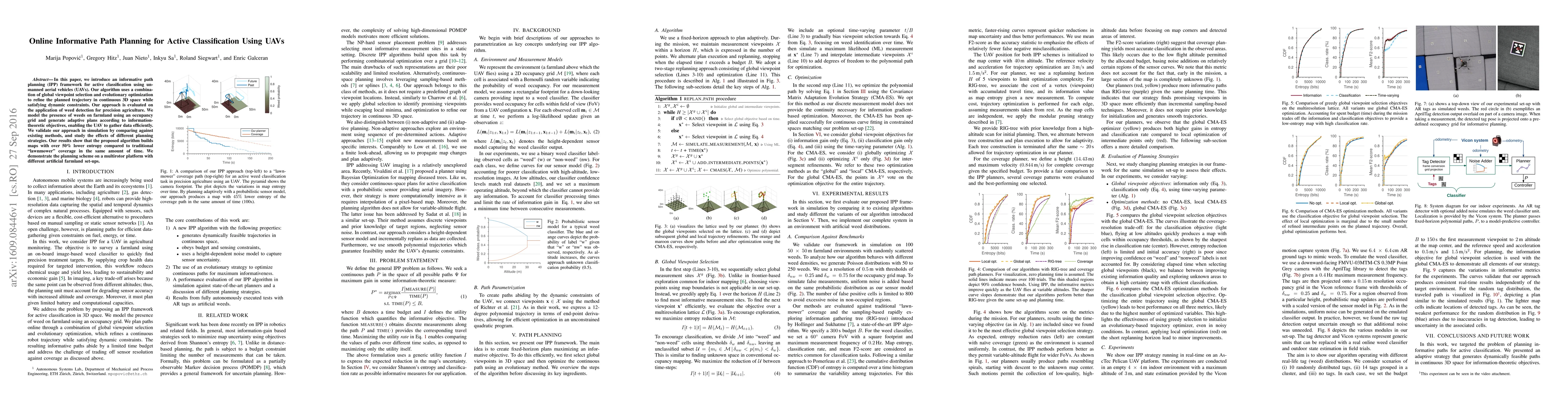 This paper proposes an informative path planning framework for UAVs to optimize weed detection in precision agriculture. The algorithm combines global viewpoint selection and evolutionary optimization to generate adaptive, efficient flight paths in 3D space, significantly reducing entropy compared to traditional methods.