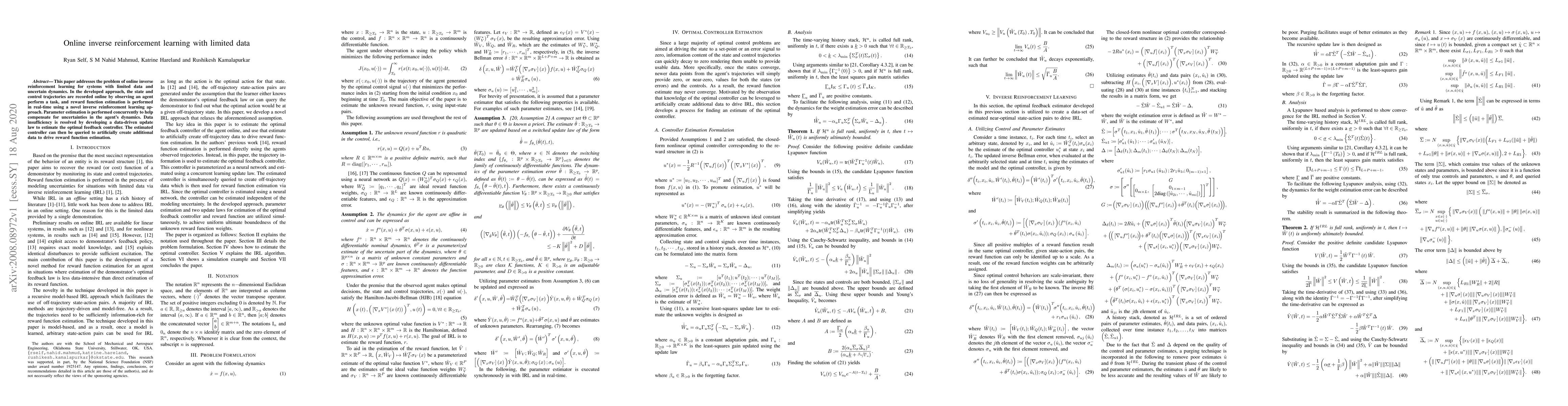 The research uses a novel control-estimation-based approach to perform reward function estimation online for systems with limited data.