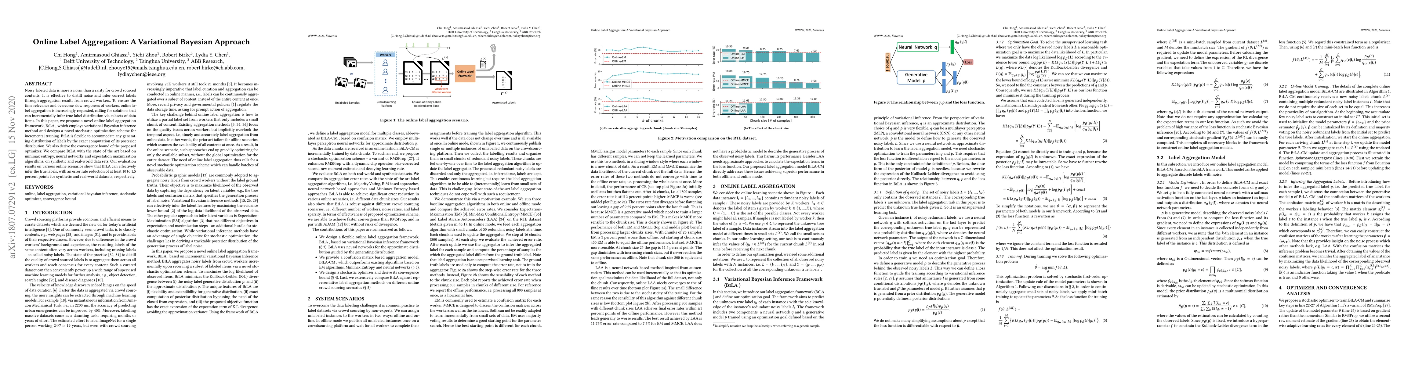 This paper proposes BiLA, an online label aggregation framework using variational Bayesian inference to incrementally infer true label distributions from crowd-sourced data. The method is shown to outperform state-of-the-art techniques in reducing label inference error by at least 10 to 1.5 percent points on synthetic and real-world datasets.