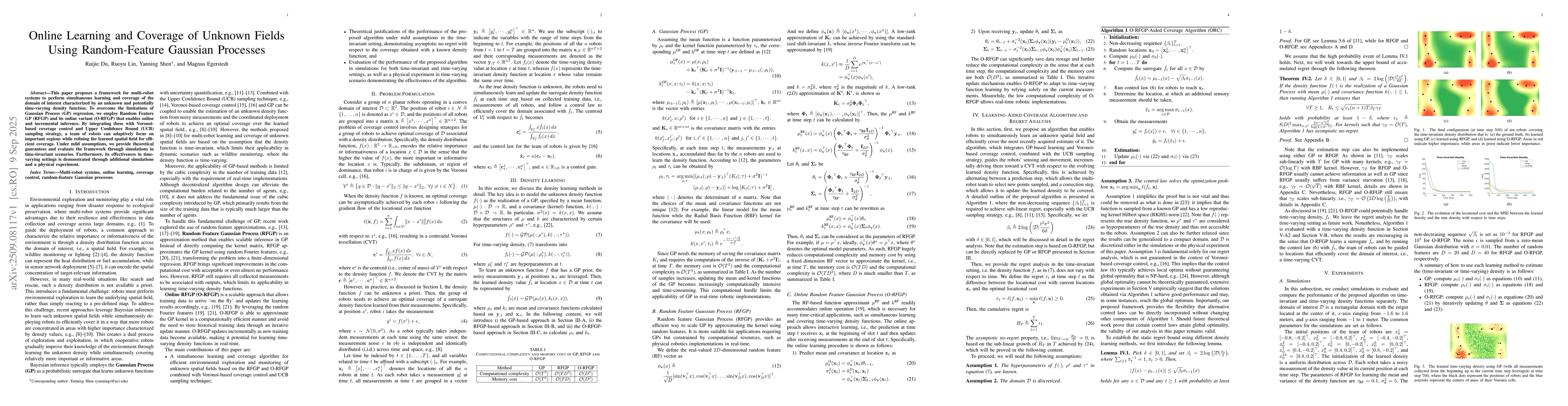 This paper proposes a framework for multi-robot systems to perform simultaneous learning and coverage of the domain of interest characterized by an unknown and potentially time-varying density function. To overcome the limitations of Gaussian Process (GP) regression, we employ Random Feature GP (RFGP) and its online variant (O-RFGP) that enables online and incremental inference. By integrating these with Voronoi-based coverage control and Upper Confidence Bound (UCB) sampling strategy, a team of robots can adaptively focus on important regions while refining the learned spatial field for efficient coverage. Under mild assumptions, we provide theoretical guarantees and evaluate the framework through simulations in time-invariant scenarios. Furthermore, its effectiveness in time-varying settings is demonstrated through additional simulations and a physical experiment.