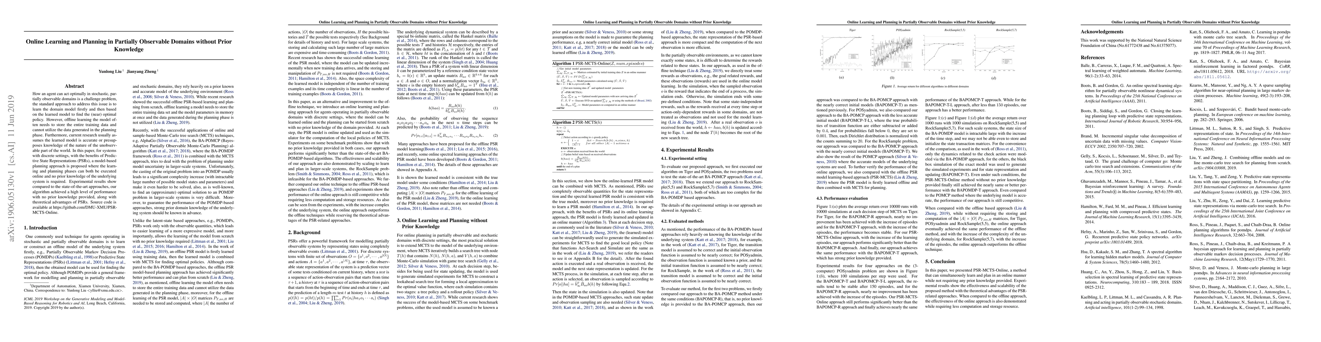 This paper proposes an online model-based planning approach using Predictive State Representations (PSRs) for stochastic, partially observable domains without prior knowledge, achieving high performance compared to state-of-the-art methods. The approach allows simultaneous online learning and planning, addressing the limitation of offline model learning.