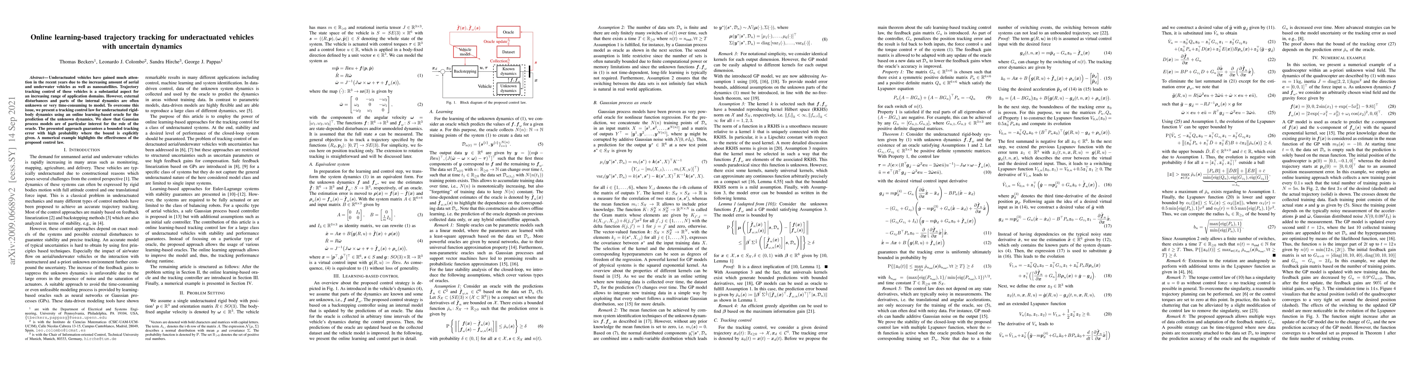 This paper presents an online learning-based control law for trajectory tracking of underactuated vehicles with uncertain dynamics, using Gaussian process models to predict unknown dynamics. The approach guarantees a bounded tracking error with high probability, as demonstrated by a numerical example.