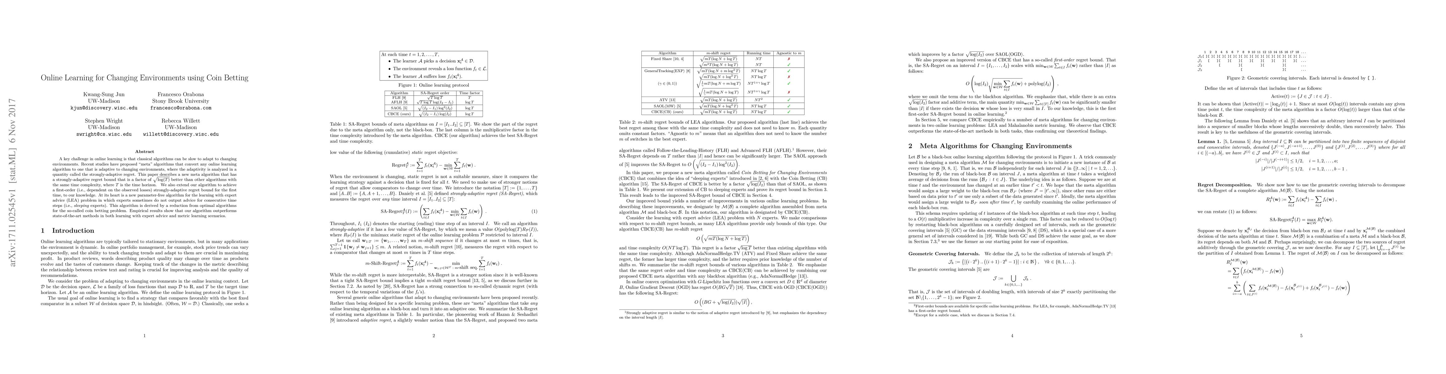 A key challenge in online learning is that classical algorithms can be slow to adapt to changing environments. Recent studies have proposed "meta" algorithms that convert any online learning algorithm to one that is adaptive to changing environments, where the adaptivity is analyzed in a quantity called the strongly-adaptive regret. This paper describes a new meta algorithm that has a strongly-adaptive regret bound that is a factor of $\sqrt{\log(T)}$ better than other algorithms with the same time complexity, where $T$ is the time horizon. We also extend our algorithm to achieve a first-order (i.e., dependent on the observed losses) strongly-adaptive regret bound for the first time, to our knowledge. At its heart is a new parameter-free algorithm for the learning with expert advice (LEA) problem in which experts sometimes do not output advice for consecutive time steps (i.e., \emph{sleeping} experts). This algorithm is derived by a reduction from optimal algorithms for the so-called coin betting problem. Empirical results show that our algorithm outperforms state-of-the-art methods in both learning with expert advice and metric learning scenarios.