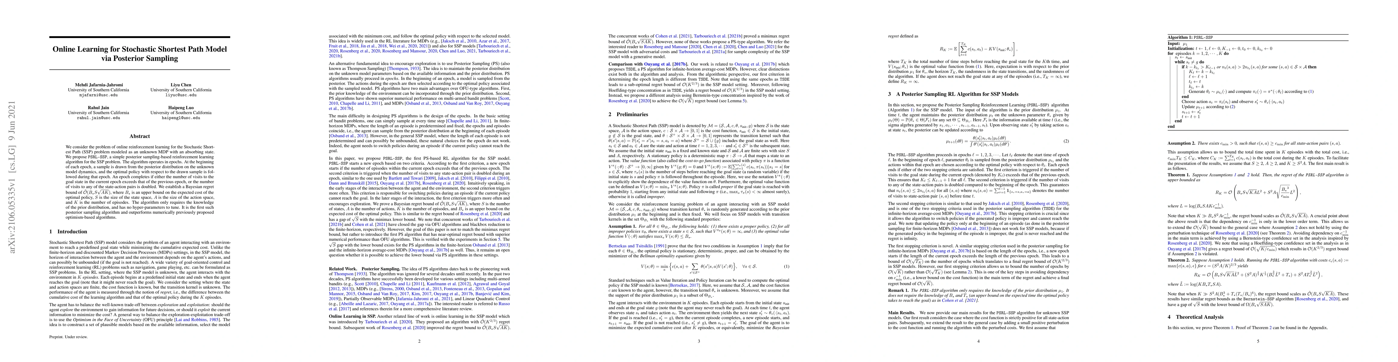 The paper presents PSRL-SSP, a posterior sampling-based algorithm for the SSP problem, which operates in epochs, uses posterior samples, and achieves a Bayesian regret bound of O(B*S√AK).