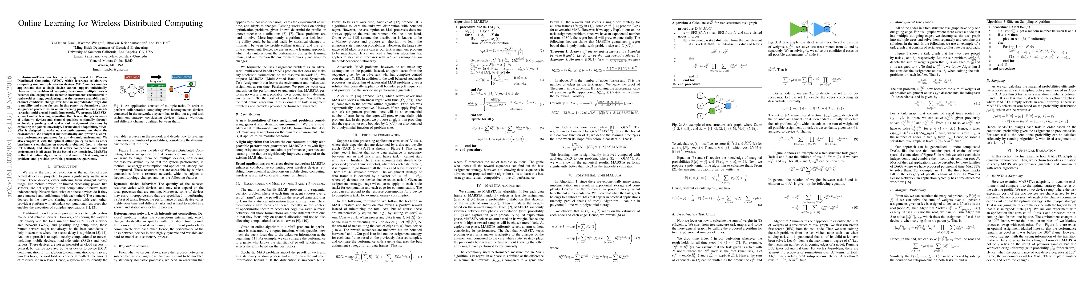 Researchers developed MABSTA, an online learning algorithm for task assignment in Wireless Distributed Computing, which learns from exploration and exploitation to adapt to dynamic environments.