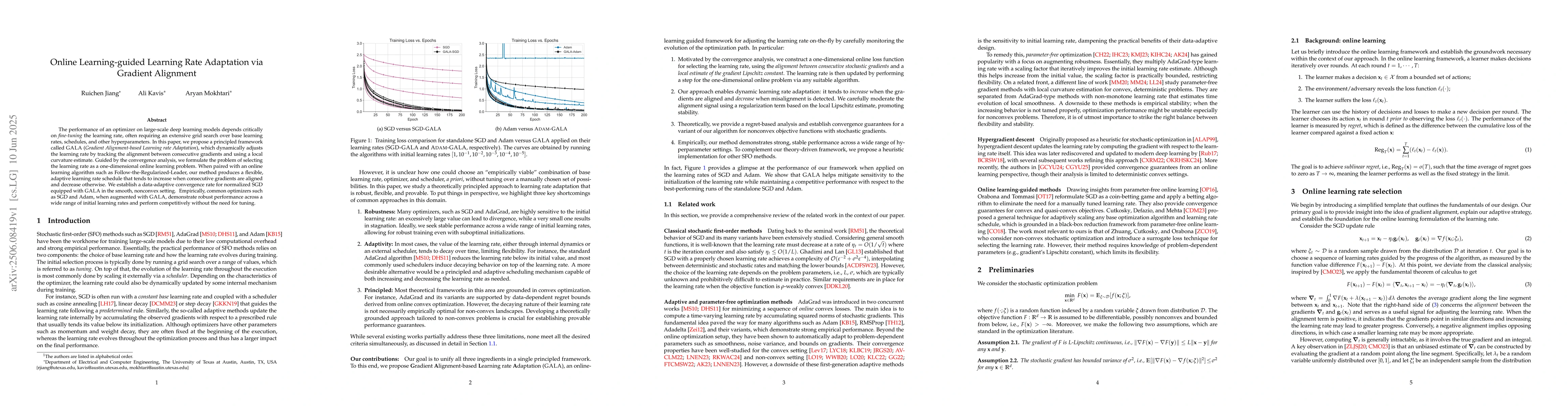 GALA, a gradient alignment-based learning rate adaptation framework, dynamically adjusts the learning rate by tracking alignment between consecutive gradients, producing a flexible and adaptive schedule that boosts performance without extensive hyperparameter tuning.