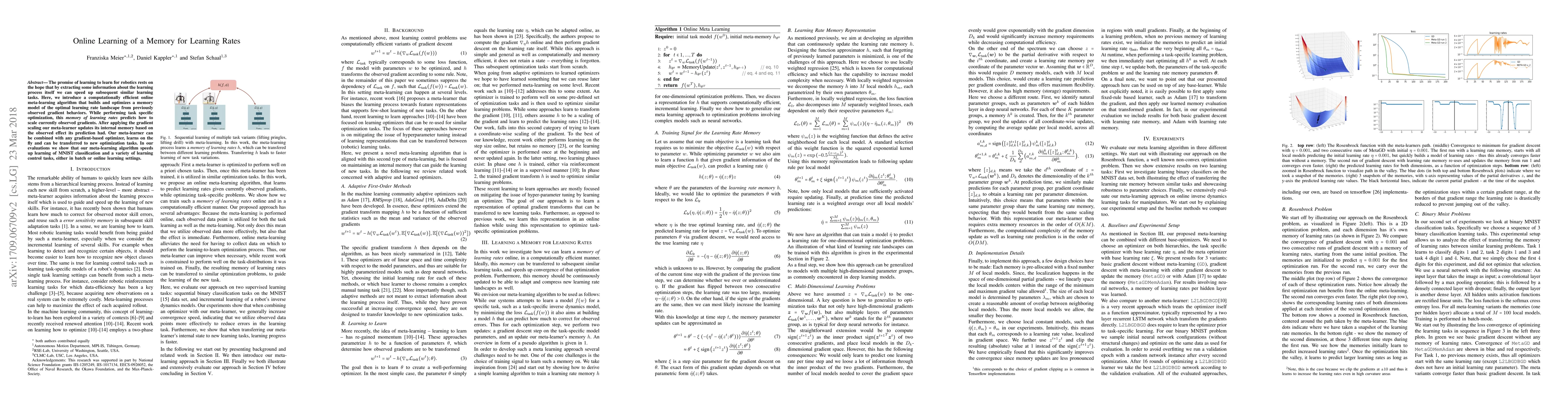 The paper presents a computationally efficient online meta-learning algorithm that builds a memory model of learning rates, which can be updated incrementally and transferred to new optimization tasks.