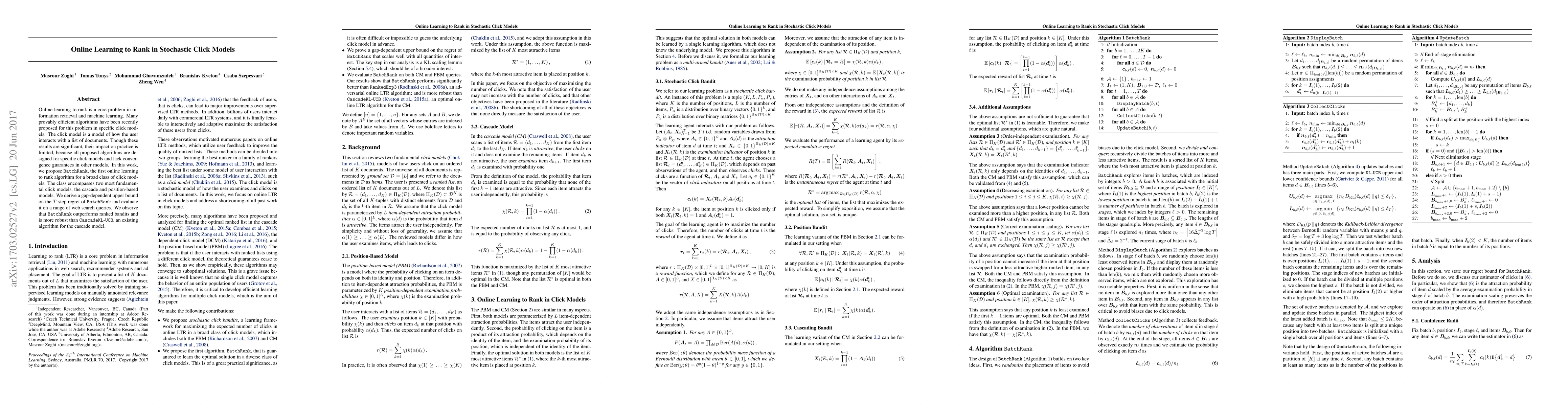 This paper introduces BatchRank, an online learning to rank algorithm designed for a broad class of stochastic click models, including cascade and position-based models. It demonstrates BatchRank's superior performance and robustness compared to existing algorithms, as shown through empirical evaluations on web search queries.