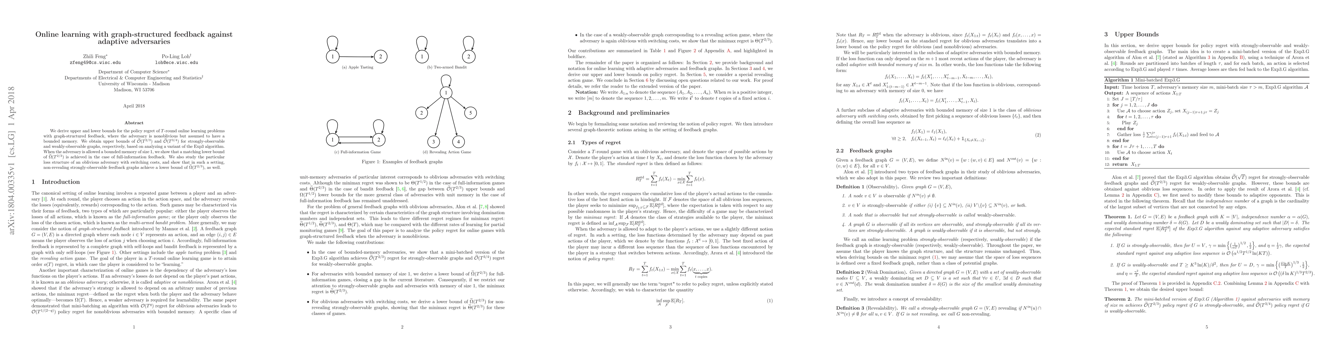 This research paper analyzes online learning with graph-structured feedback against adaptive adversaries, showing upper bounds of $\widetilde O(T^{2/3})$ for strongly-observable graphs and $\widetilde O(T^{3/4})$ for weakly-observable graphs.