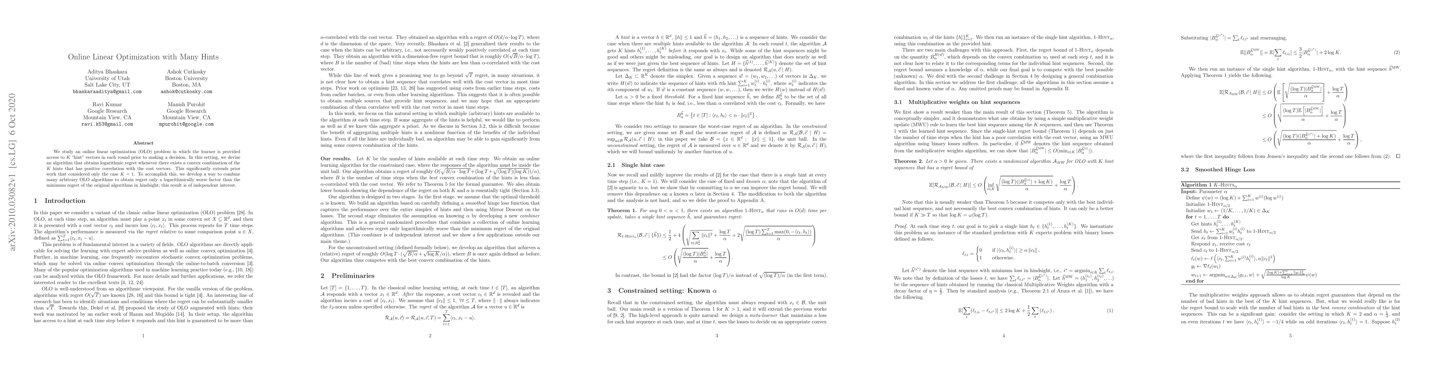 Researchers created an online linear optimization algorithm that can achieve logarithmic regret with access to multiple hint vectors, extending previous work that only considered one hint vector.