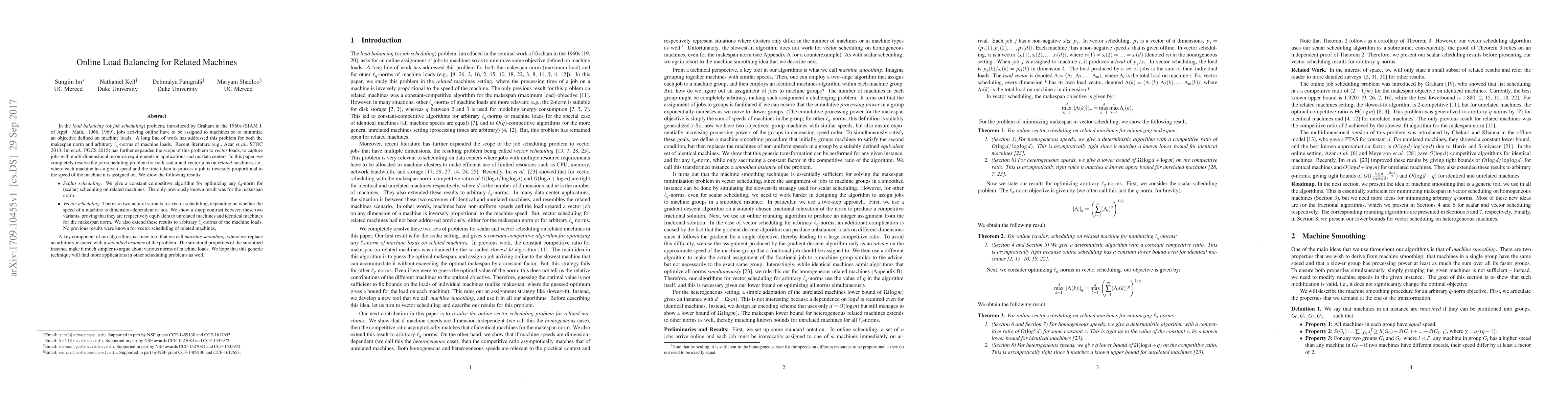 The paper introduces constant competitive algorithms for both scalar and vector jobs on related machines, resolving the job scheduling problem for ℓ_q-norms and contrasting vector scheduling variants with unrelated and identical machines.