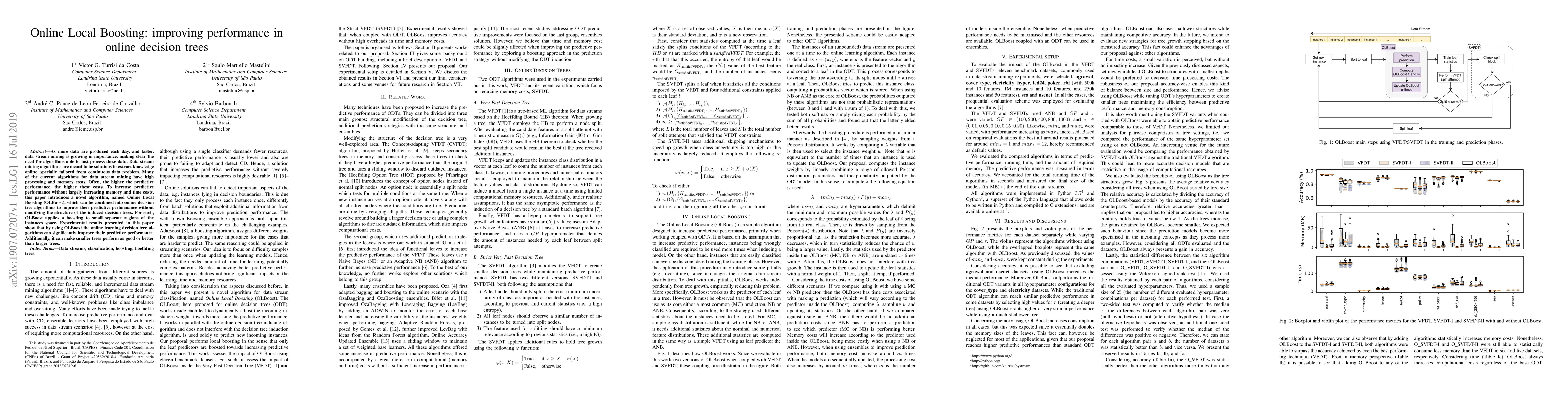 This paper introduces Online Local Boosting (OLBoost), a novel algorithm designed to enhance the predictive performance of online decision tree algorithms in data stream mining without significantly increasing memory or processing costs. Experimental results demonstrate that OLBoost can improve performance and make smaller trees as effective as larger ones.