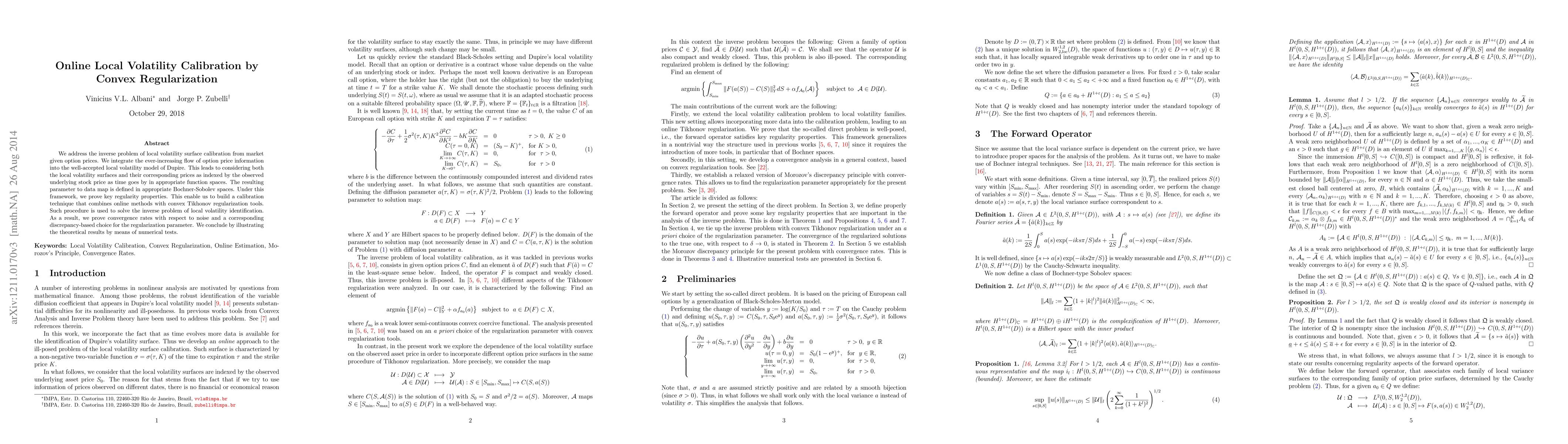 This research presents a method for calibrating local volatility surfaces in financial models using online convex regularization and Morozov's Principle, proving convergence rates and demonstrating through numerical tests.