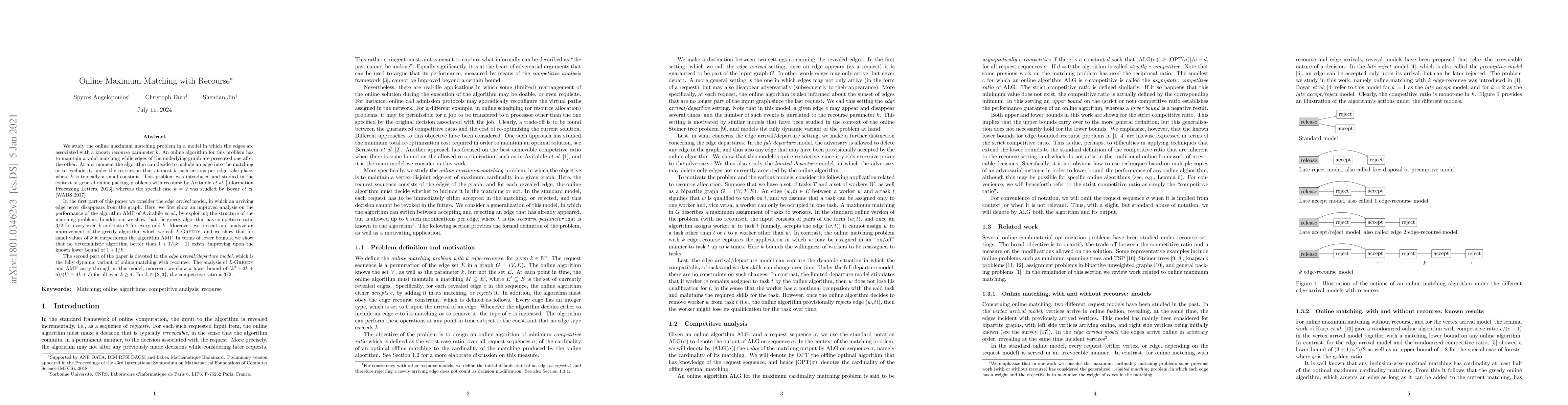 This paper studies the online maximum matching problem with recourse, where edges can be included or excluded with limited recourse actions per edge. It improves the analysis of existing algorithms and introduces a new $L$-Greedy algorithm that outperforms previous methods for small recourse values. The paper also establishes new competitive ratios and lower bounds for both edge arrival and edge arrival/departure models.