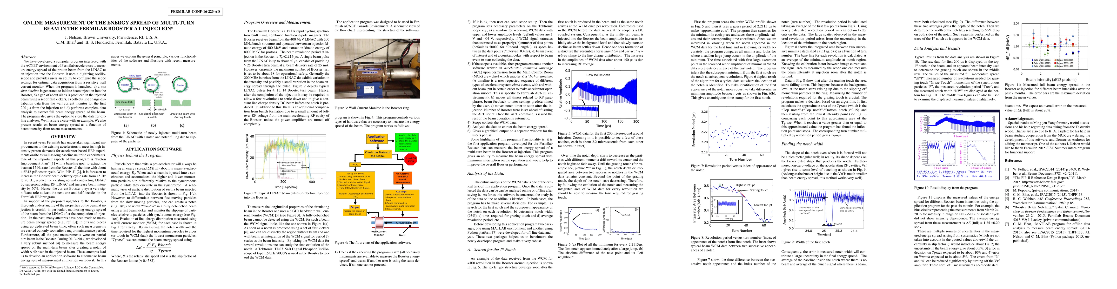 This paper describes a computer program for measuring the energy spread of a proton beam at Fermilab's Booster injection, utilizing a digitizing oscilloscope and resistive wall current monitor. The program generates a one-shot timeline, creates a 40 ns gap in the beam, and analyzes the collected data to determine the full beam energy spread.