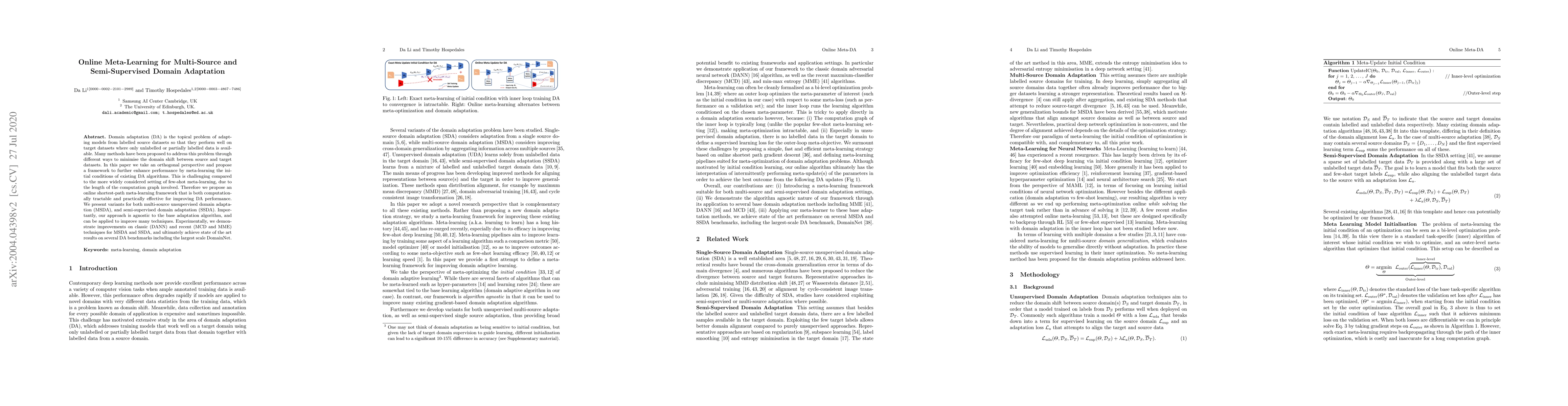 This paper proposes an online meta-learning framework to enhance domain adaptation performance in multi-source and semi-supervised settings, achieving state-of-the-art results on several benchmarks.