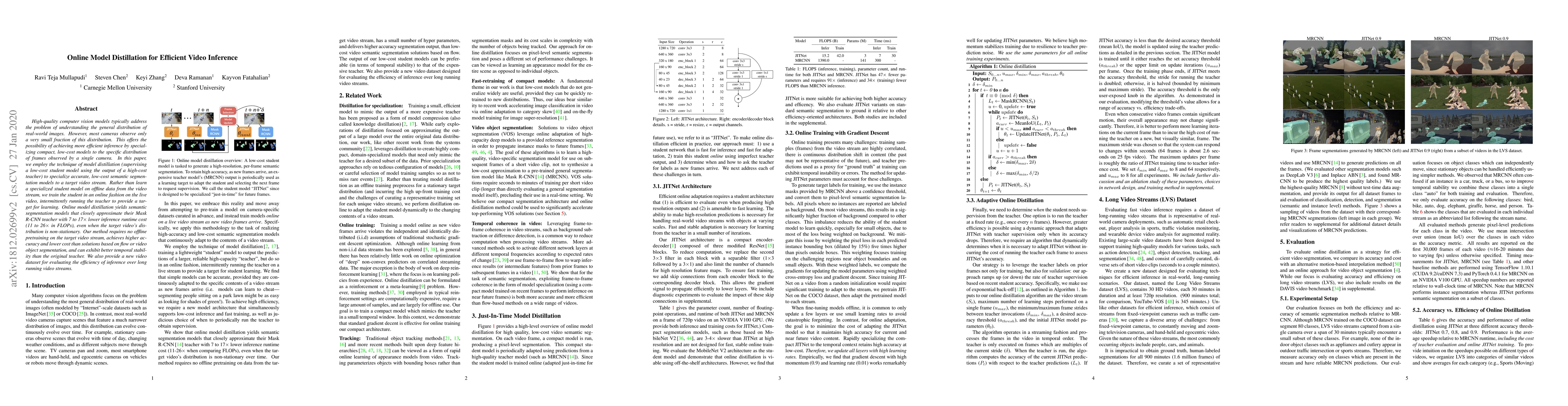 Researchers developed an online model distillation method to create efficient video inference models that can generalize across a dynamic distribution of frames observed by a single camera, achieving 7-17x lower inference runtime cost than traditional methods.