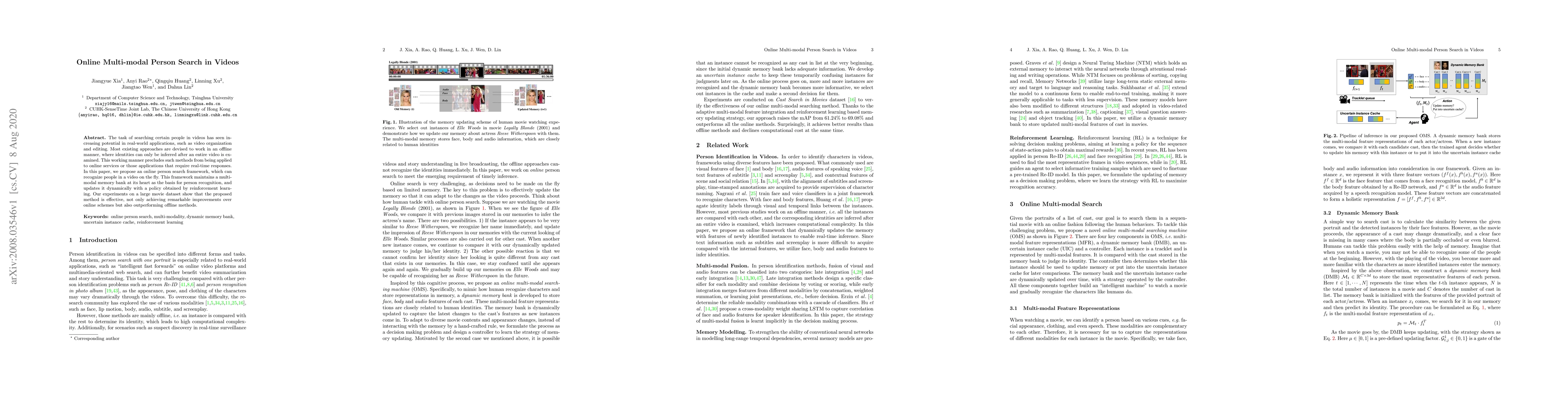 Researchers propose an online person search framework that recognizes people in videos in real-time using a multimodal memory bank updated with reinforcement learning, achieving impressive results over existing offline methods.