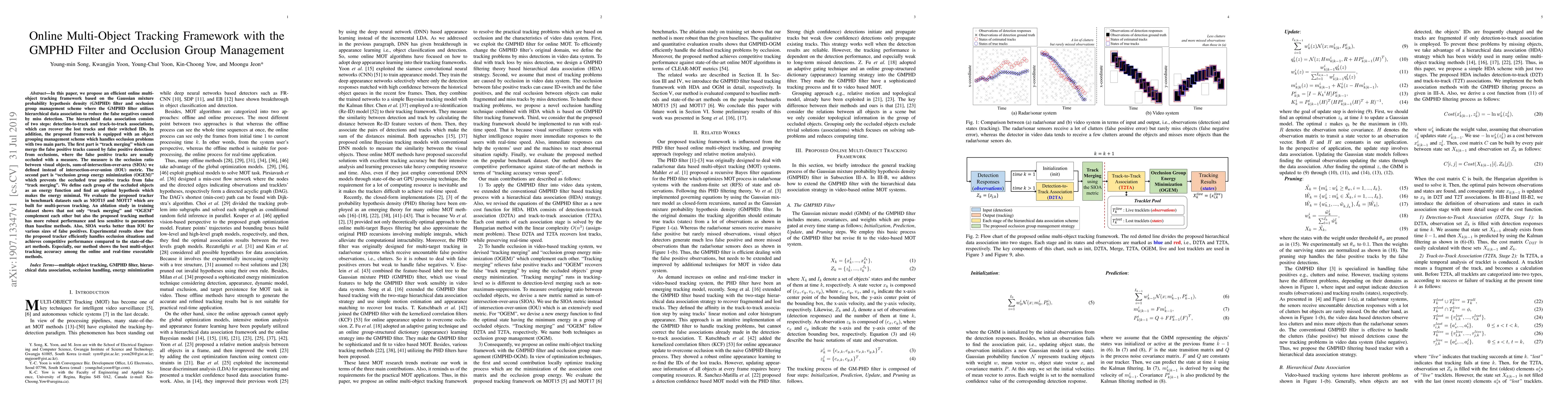 The paper proposes an online multi-object tracking framework that efficiently handles occlusion situations using a GMPHD filter and occlusion group management scheme, achieving competitive performance with state-of-the-art methods.