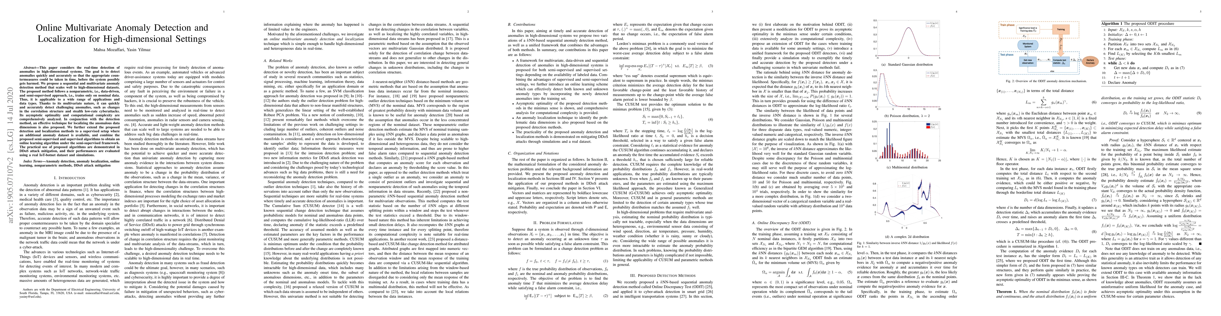 This paper proposes a scalable method for detecting anomalies in high-dimensional systems, including localization techniques, with applications in DDoS attack mitigation and IoT-botnet security.
