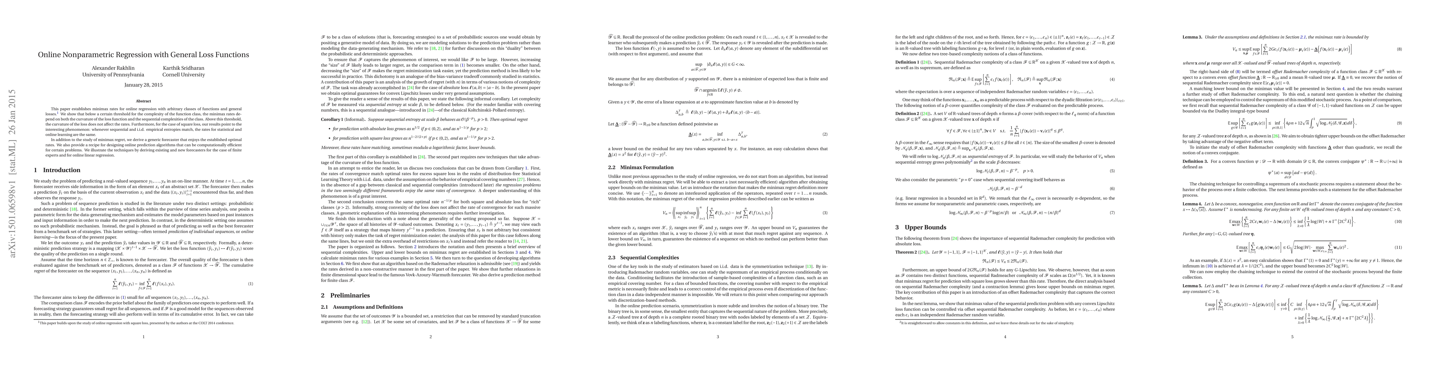 This paper establishes minimax rates for online nonparametric regression with general loss functions, showing that below a certain complexity threshold, the rates depend on both loss function curvature and function class complexity. Above this threshold, loss curvature no longer affects the rates, and it identifies a scenario where online and i.i.d. learning rates coincide. It also introduces a generic forecaster achieving optimal rates and provides a method for designing efficient online prediction algorithms.