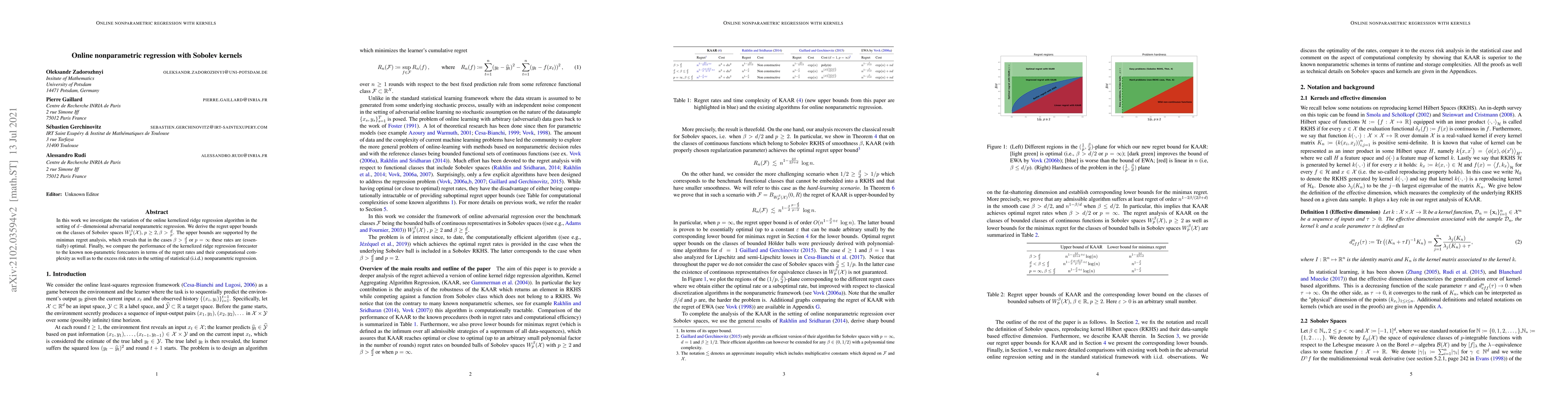 This paper explores an online kernelized ridge regression algorithm for $d$-dimensional nonparametric regression, deriving regret upper bounds for Sobolev spaces. The analysis shows that the proposed method achieves optimal performance under certain conditions and compares favorably to other non-parametric forecasters in terms of regret rates and computational complexity.