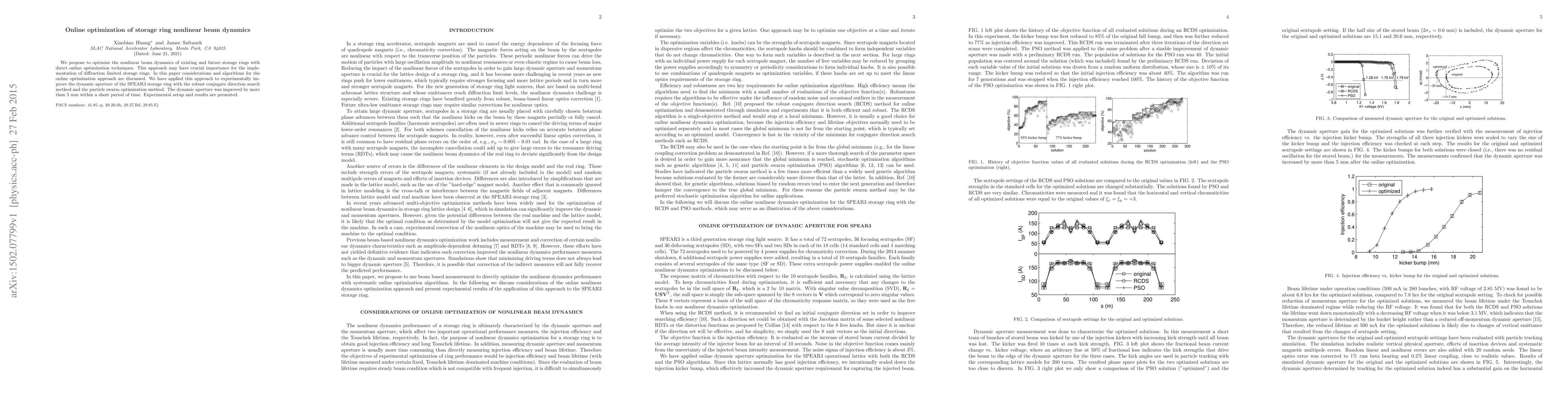 This paper proposes an online optimization technique to enhance the nonlinear beam dynamics in storage rings, crucial for achieving diffraction-limited performance. The method was successfully applied to the SPEAR3 storage ring, improving its dynamic aperture by over 5 mm using the conjugate direction search and particle swarm optimization methods.