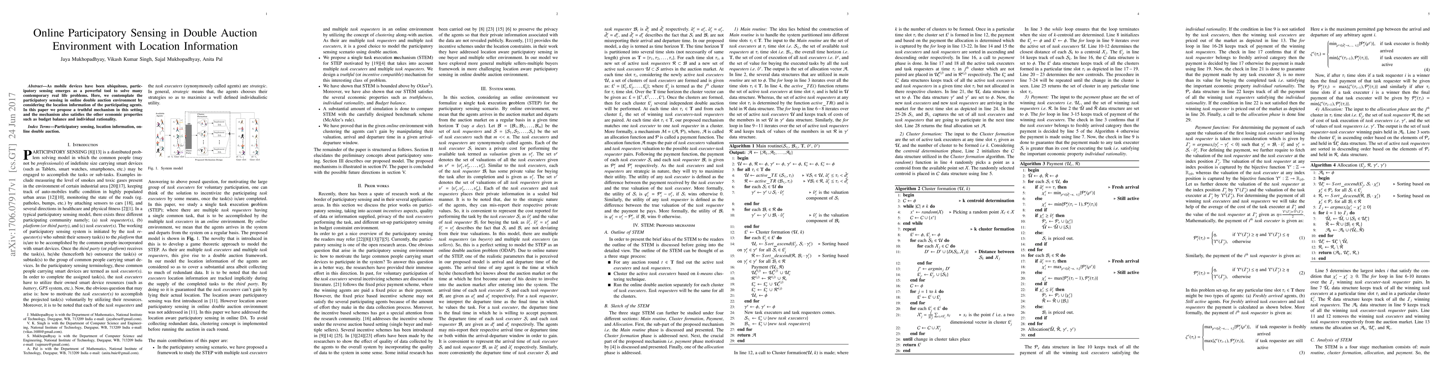 This paper proposes a truthful mechanism for online participatory sensing in double auction environments that incorporates location information of participants, ensuring budget balance and individual rationality. The mechanism aims to leverage ubiquitous mobile devices to solve real-life problems efficiently.