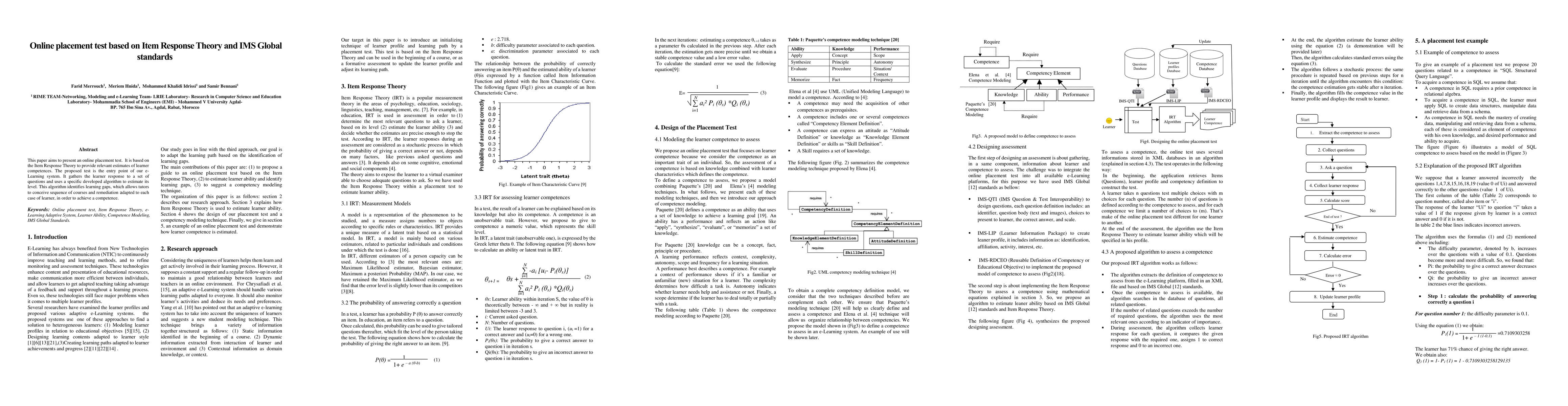 This paper introduces an online placement test based on Item Response Theory, designed to assess learner competences and identify gaps, facilitating tailored course sequences and remediation within an e-Learning system. The test adheres to IMS Global standards and employs a custom algorithm to estimate learner levels.