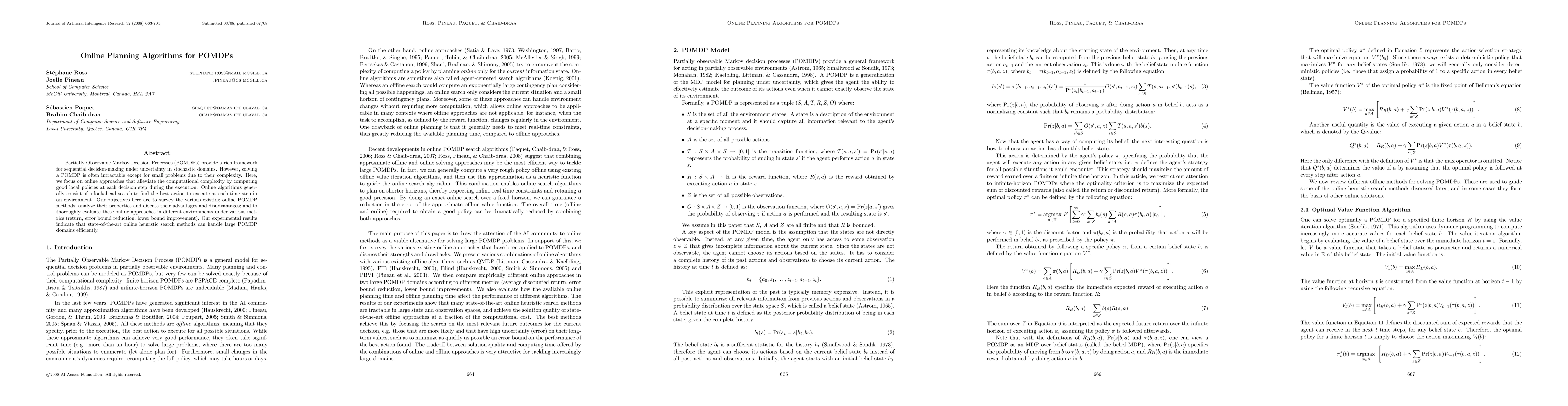 Online algorithms can efficiently solve Partially Observable Markov Decision Processes (POMDPs) with large domains, improving upon traditional methods in terms of return and error bound reduction.