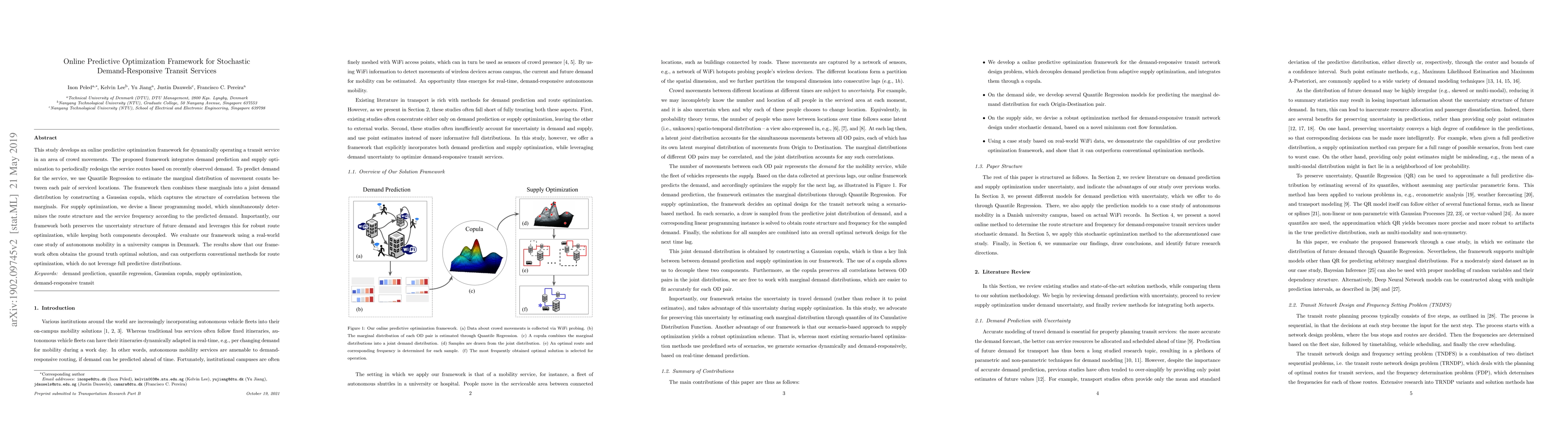 This study proposes an online predictive optimization framework for dynamic demand-responsive transit services, utilizing Quantile Regression and Gaussian copula for demand prediction and linear programming for supply optimization. The framework effectively integrates demand prediction and route optimization, outperforming conventional methods in a real-world case study on a university campus.