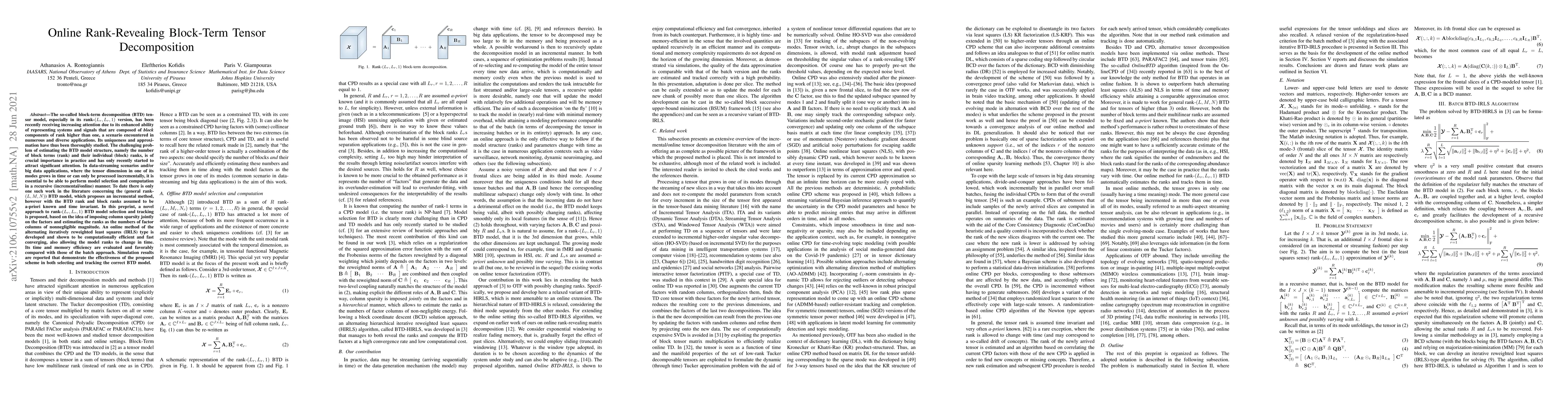 Researchers propose a novel approach to estimating block-term tensor decomposition model structure in an online, incremental manner, allowing for adaptive rank estimation and improved computational efficiency.