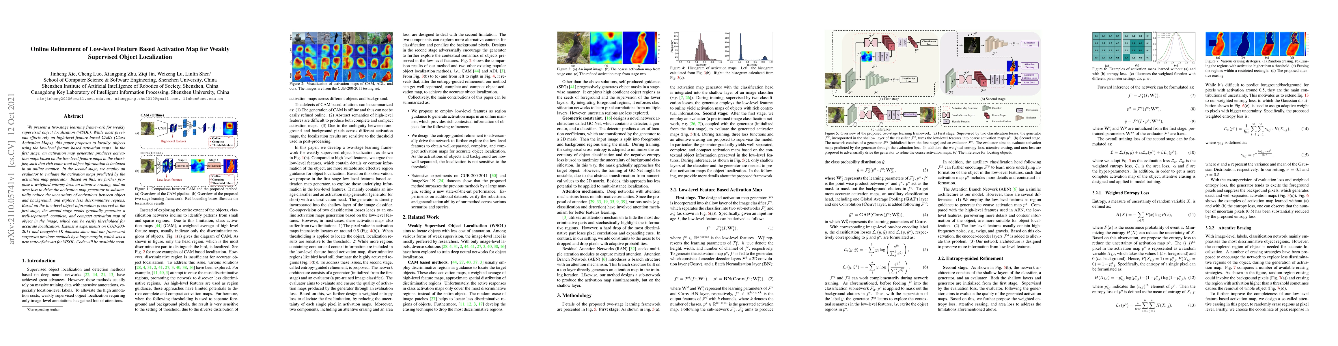 This paper proposes a two-stage learning framework for weakly supervised object localization using low-level feature activation maps, achieving state-of-the-art results on CUB-200-2011 and ImageNet-1K datasets.