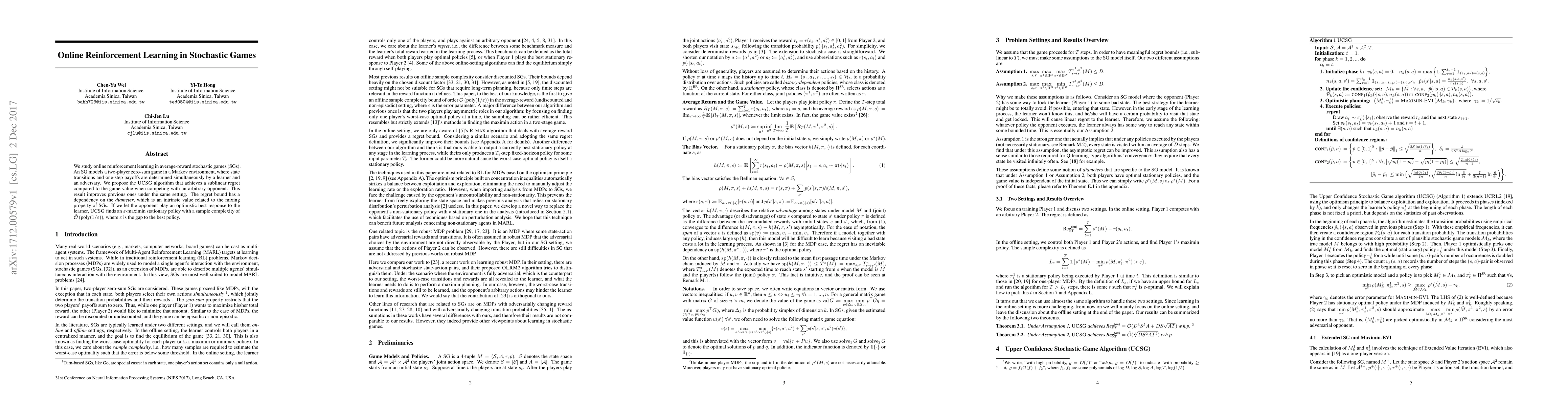 Researchers develop an online reinforcement learning algorithm for stochastic games that achieves sublinear regret compared to the game value, improving upon previous results. The algorithm can find an optimal policy with a sample complexity of $ ilde{ ext{poly}}(1/ ext{$oldsymbol{oldsymbol{oldsymbol{oldsymbol{oldsymbol{oldsymbol{oldsymbol{oldsymbol{oldsymbol{oldsymbol{oldsymbol{oldsymbol{oldsymbol{oldsymbol{oldsymbol{oldsymbol{oldsymbol{oldsymbol{oldsymbol{e}}}}}}}}}}}}$}})$.