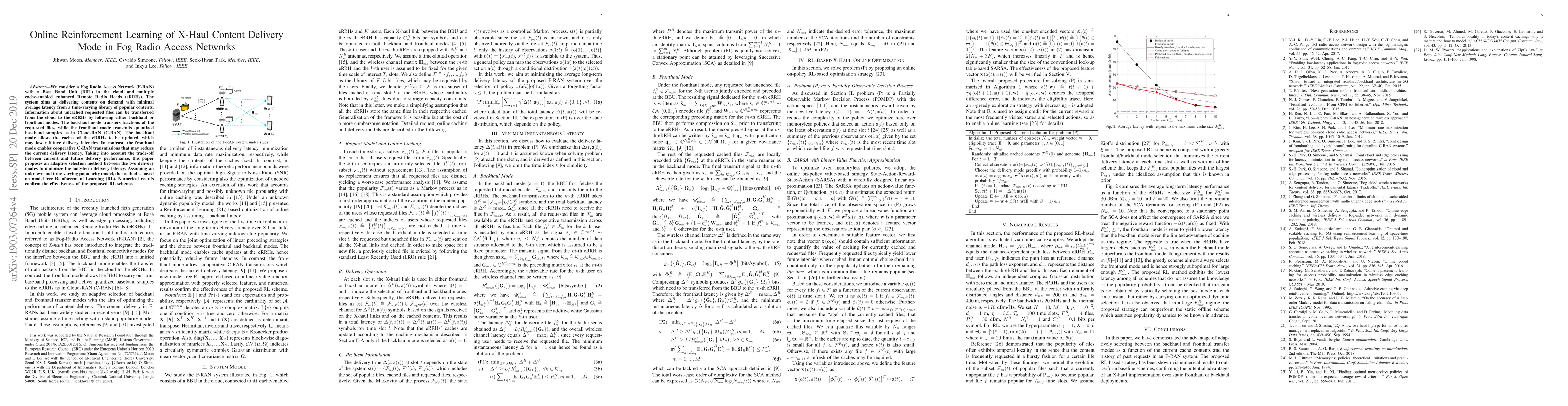 This paper proposes an adaptive reinforcement learning method to select between backhaul and fronthaul modes for content delivery in Fog Radio Access Networks, aiming to minimize long-term delivery latency while considering the trade-off between current and future performance. Numerical results demonstrate the effectiveness of the proposed model-free reinforcement learning approach.