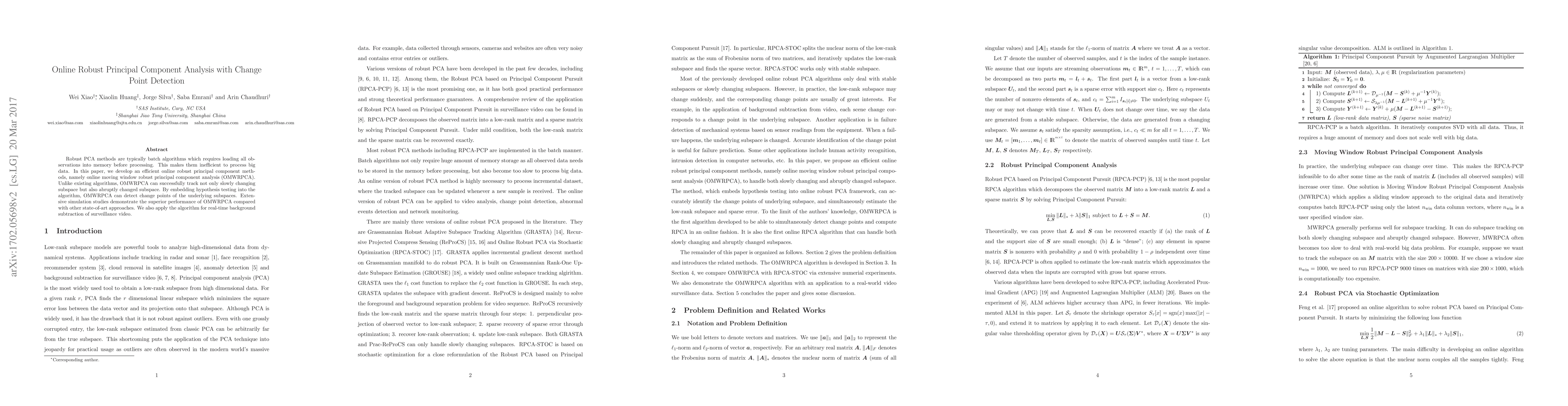 This paper introduces an online robust principal component analysis method (OMWRPCA) that efficiently processes big data by tracking both slowly and abruptly changing subspaces. The algorithm detects change points through embedded hypothesis testing, demonstrating superior performance in simulations and real-time applications like surveillance video background subtraction.