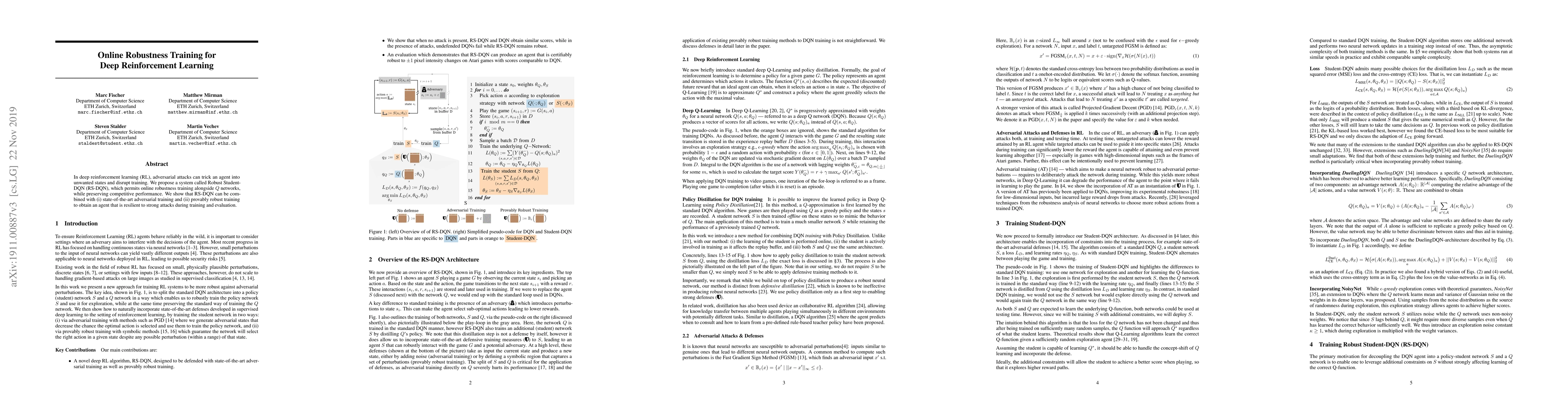 This paper proposes Robust Student-DQN (RS-DQN) for deep reinforcement learning, enabling online robustness training that maintains competitive performance. RS-DQN integrates with adversarial and provably robust training methods to enhance the agent's resilience against strong attacks during both training and evaluation.