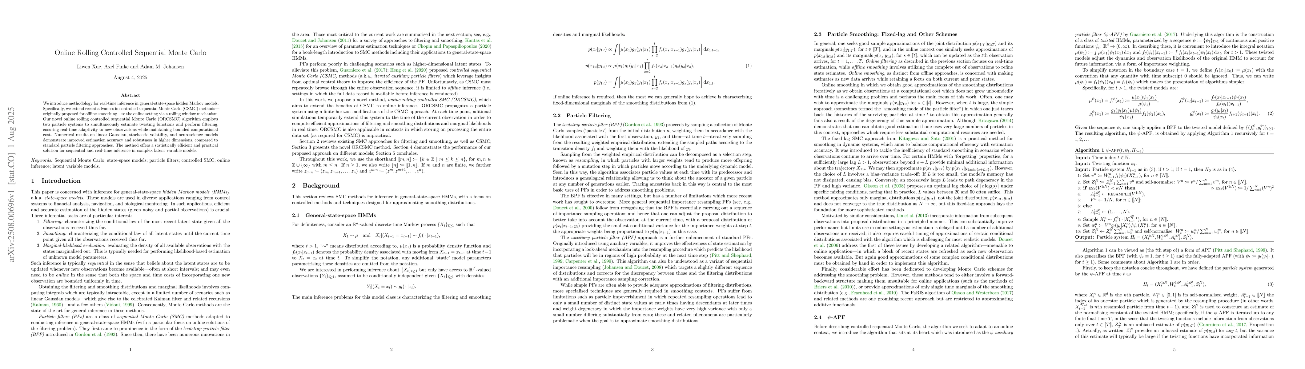 We introduce methodology for real-time inference in general-state-space hidden Markov models. Specifically, we extend recent advances in controlled sequential Monte Carlo (CSMC) methods-originally proposed for offline smoothing-to the online setting via a rolling window mechanism. Our novel online rolling controlled sequential Monte Carlo (ORCSMC) algorithm employs two particle systems to simultaneously estimate twisting functions and perform filtering, ensuring real-time adaptivity to new observations while maintaining bounded computational cost. Numerical results on linear-Gaussian, stochastic volatility, and neuroscience models demonstrate improved estimation accuracy and robustness in higher dimensions, compared to standard particle filtering approaches. The method offers a statistically efficient and practical solution for sequential and real-time inference in complex latent variable models.