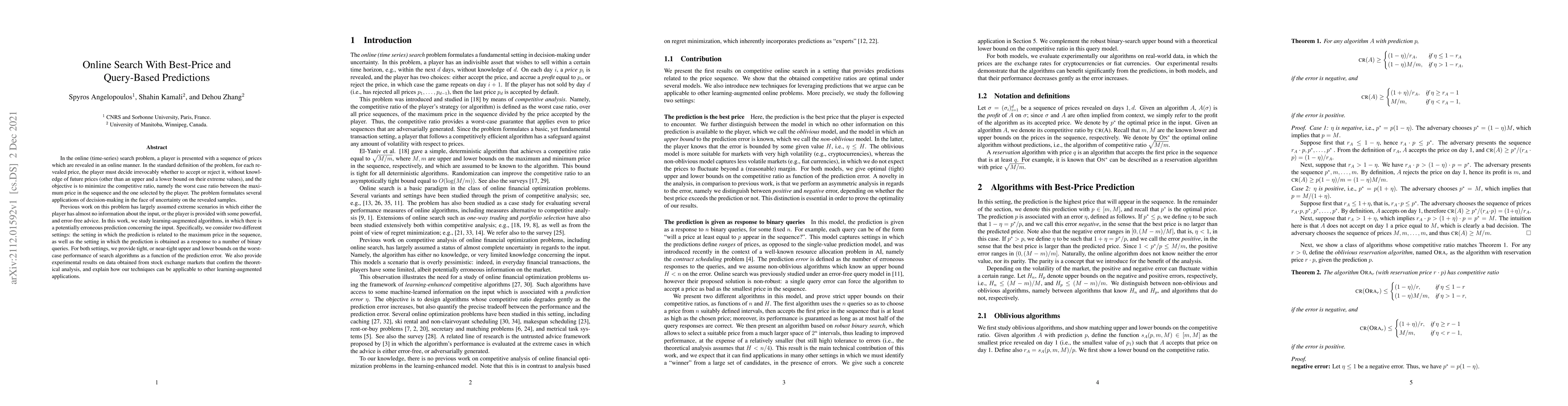 In the online (time-series) search problem, a player is presented with a sequence of prices which are revealed in an online manner. In the standard definition of the problem, for each revealed price, the player must decide irrevocably whether to accept or reject it, without knowledge of future prices (other than an upper and a lower bound on their extreme values), and the objective is to minimize the competitive ratio, namely the worst-case ratio between the maximum price in the sequence and the one selected by the player. The problem formulates several applications of decision-making in the face of uncertainty on the revealed samples. Previous work on this problem has largely assumed extreme scenarios in which either the player has almost no information about the input, or the player is provided with some powerful, and error-free advice. In this work, we study learning-augmented algorithms, in which there is a potentially erroneous prediction concerning the input. Specifically, we consider two different settings: the setting in which the prediction is related to the maximum price in the sequence, as well as the setting in which the prediction is obtained as a response to a number of binary queries. For both settings, we provide tight, or near-tight upper and lower bounds on the worst-case performance of search algorithms as a function of the prediction error. We also provide experimental results on data obtained from stock exchange markets that confirm the theoretical analysis, and explain how our techniques can be applicable to other learning-augmented applications.