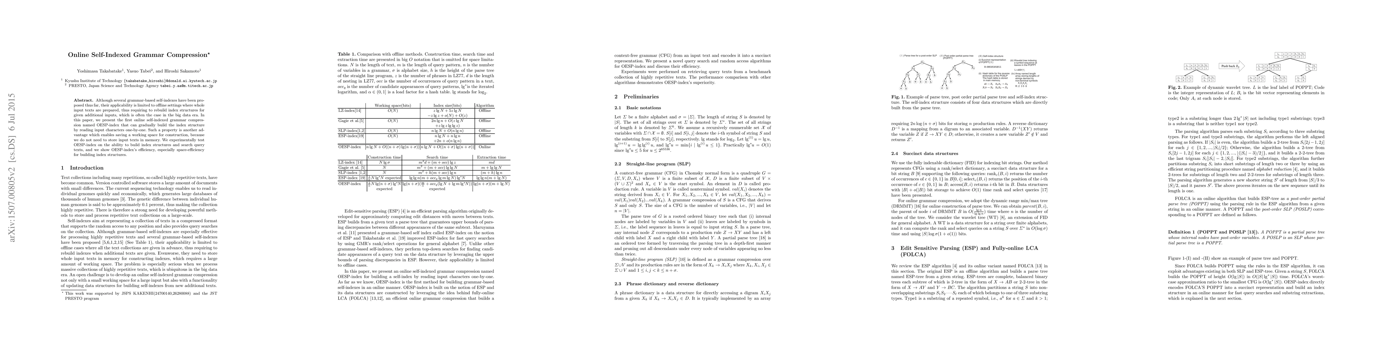 This paper introduces OESP-index, the first online self-indexed grammar compression that incrementally builds index structures by processing input characters one-by-one, enabling efficient space usage without storing entire input texts. Experimental results demonstrate OESP-index's efficiency, particularly in space-efficiency for index construction.